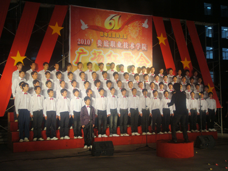 10月10日晚7:30,由院团委、学工处主办的“我与祖国共奋进”广场红歌会在文化广场隆重举行,院党委书记陈立楚、院长杜祥培、副院长刘自斌、纪委书记邹松建,我系党支书记刘跃华、学工主任朱勇志等各系领导出席并观看了本次比赛。