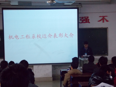 2012年12月13日下午4点,我系第十一届校运会表彰大会于主教学楼310举行。出席此次大会的有系学工副主任申再林、我系在参加此次校运会的选手以及全体学生会干部、各班班长、体育委员等。大会由学习部刘思政主持。