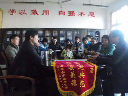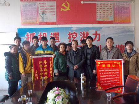 为表感谢,12月31日,如家老年公寓蒋院长一行代表该公寓所有老人向机电系送来了锦旗和感谢信。机电系总支书记陈育新、学工主任申再林和学工干事贺飞以及志愿者代表参加了此次仪式。