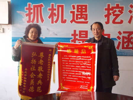 如家老年公寓送来锦旗和感谢信