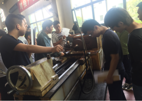 指导老师在培训中给同学们介绍了车削刀具的打磨方法、机床使用参数、如何安全使用车床。