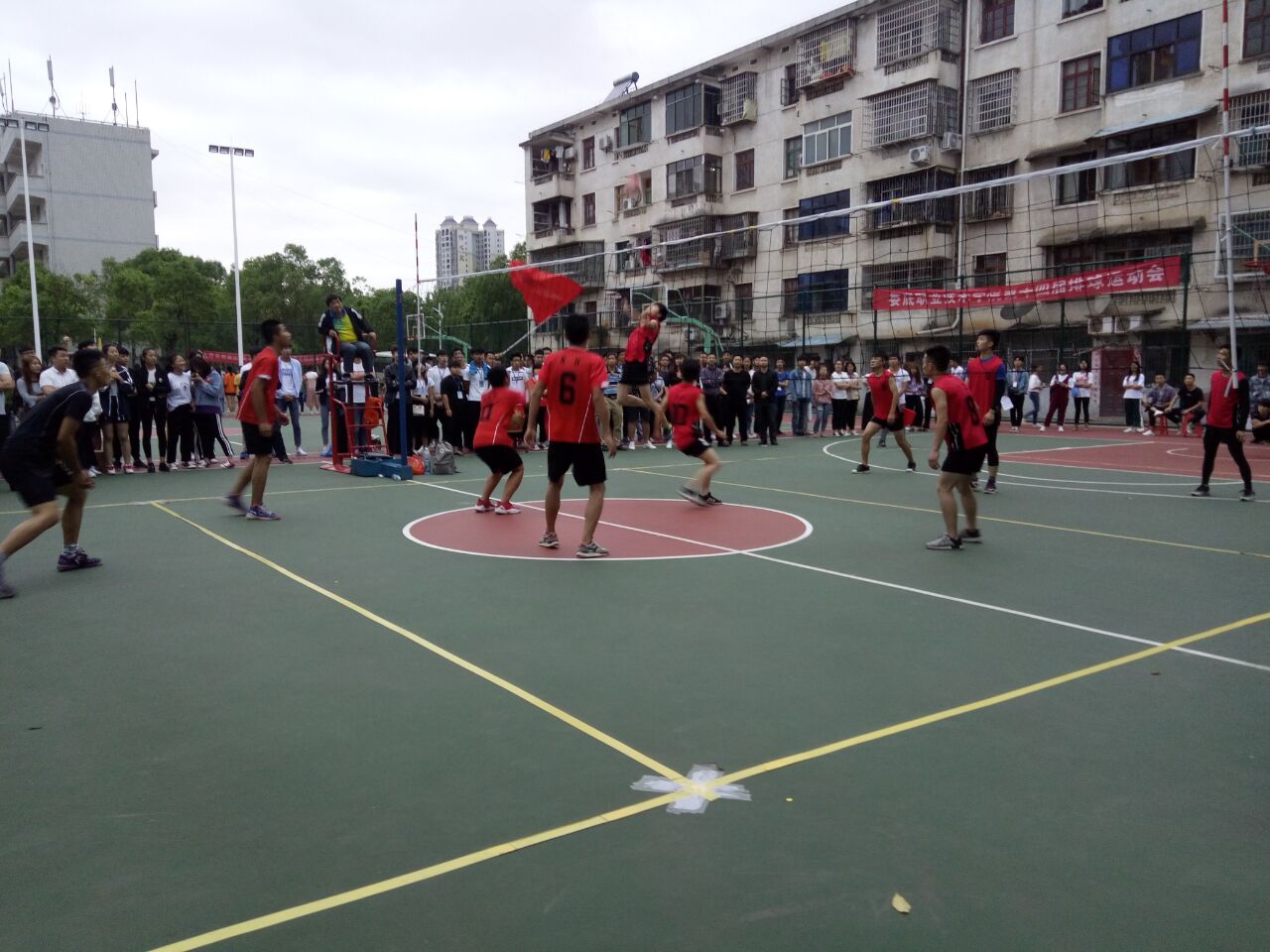 决赛与我院对决的是电信学院,在一个多月的比赛中,我院选手击败多个学院晋级决赛,每一位队员都尽力发挥,坚持个人技术与团队合作相结合,发球、接球、一传、二传、扣球, 每个环节都凝聚着大家的智慧与团结。在对手的猛烈进攻、扣杀之下,队员们不畏艰险、顽强扑救,互相打气加油,在欢笑与汗水中结束了每一场比赛。