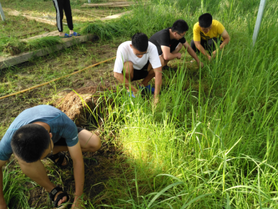 首先我们对大棚里的杂草进行清理,队员们面对参差不齐的杂草,干劲十足。劳动过程中虽然又热又累,但是队员们拔草的时候都非常认真,大家竭尽全力清除杂草、清理杂物。