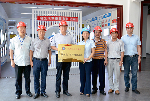 为加快发展现代职业教育,提高我校人才培养质量,满足培养既具有扎实的专业基础理论知识、能够胜任专业理论课教学任务,又有丰富的实践经验及精湛的职业技能、能够胜任实习指导和传技带徒任务的“双师型”教师队伍的需求,我校与湖南晓光汽车模具有限公司达成共识,由晓光模具负责提供专业资深技术骨干作为指导讲师,同时提供实训设备、场地和原材料,我校则派出骨干教师赴晓光模具接受企业专业技能培训,双方合力打造“双师型”教师培养基地。
