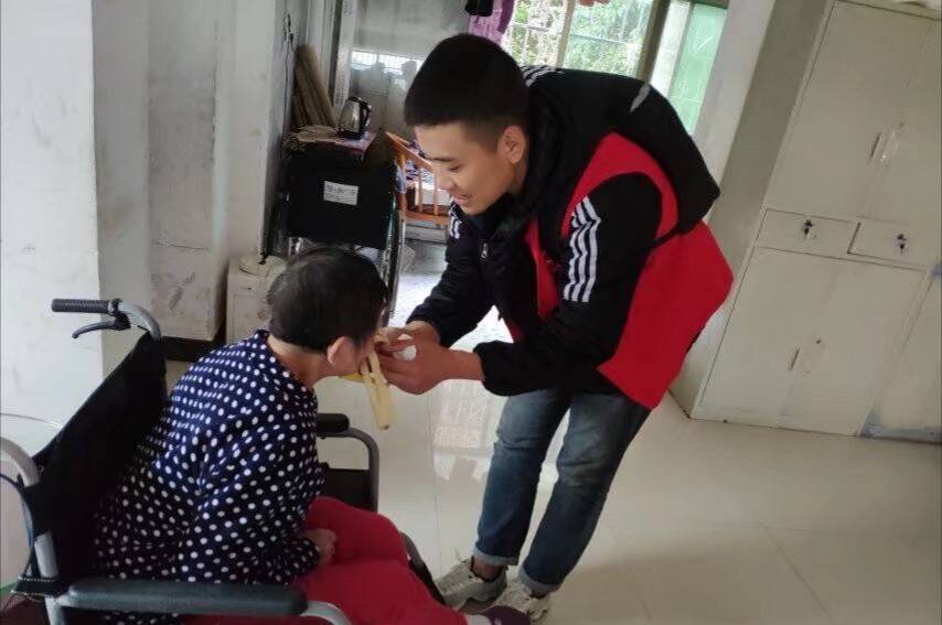11日下午两点,志愿者们集合完毕后冒着小雨一同来到如家敬老院,敬老院的工作人员亲切的欢迎他们的到来,志愿者把带来的慰问品送到每一位老人的手上后,喂他们吃东西、修剪手指甲、刮胡须等。期间,他们像老人的子女,很主动的为老人们揉揉肩,握着老人的手聊着家常,整个敬老院都热闹忙碌了起来。有几位老人更是语重心长的讲着自己年轻时期的一些经历,一些故事来鼓励志愿者们要努力学习,将来出社会后更要以服务人民为己任,为祖国作奉献。期间志愿者们都认真的倾听着长辈们的教诲。
