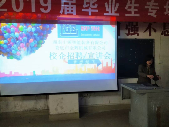 招聘现场,各企业人力资源部以PPT的形势就各自企业的管理制度,用人需求、福利待遇,企业文化,主要产品,娄底资源政策等向同学们做了介绍,并现场解答了同学们的疑问。真诚的邀请同学们加入他们的团队,通过努力工作学习,实现自己的人生理想。