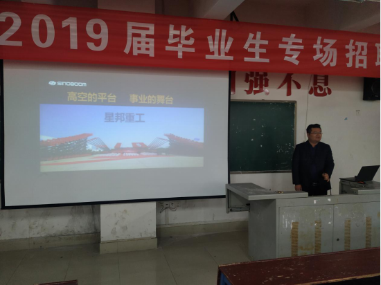 11月18号上午九点半,娄底职业技术学院机电工程学院2019届毕业生娄底专场招聘会在教学楼318号教室举行。机电学院院长陈育新、党总支书记廖婧华、学工副院长梁艳丰、干事戴湘、就业指导老师廖康林、学校招生就业处老师王会出席本次招聘会,有机电一体化专业近百名同学参加本次招聘。、湖南星邦重工有限公司、湖南电将军集团有限公司、湖南金辉机械有限公司、娄底光华机械有限公司等10家企业参与了招聘。