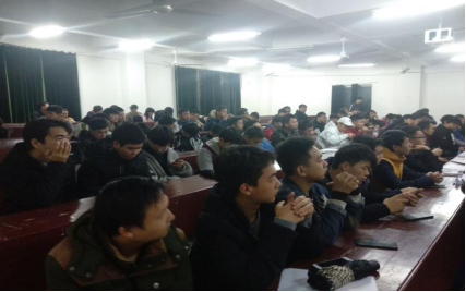 同学们正在认真听宣讲