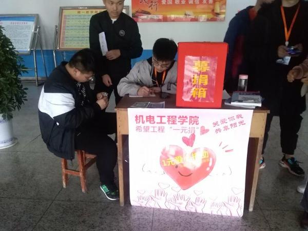 本次希望工程“一元捐”活动,为需要帮助的人出了一份力。付出点滴,温暖他人。在我们身边,因为爱,世界充满温馨;因为爱,所有人连在一起。让雷锋精神在校园中传递。(朱晓军 杨鑫 范武)
