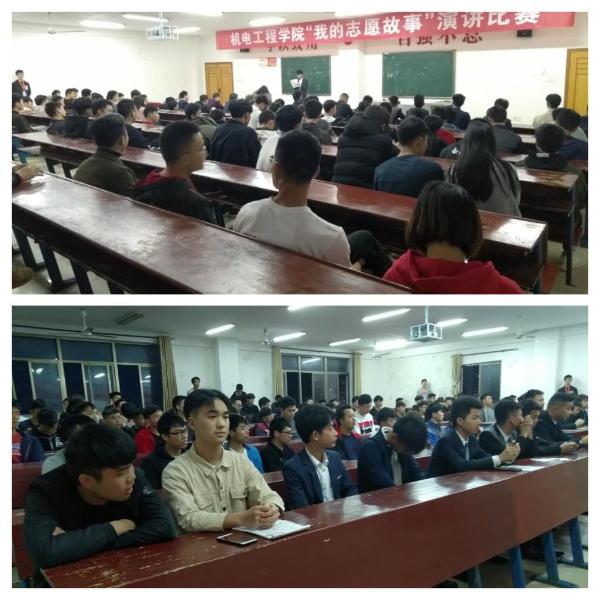 为了丰富在校大学生们的学习生活,锻炼学生们的演讲能力和口头表达能力,给大家提供一个展现自我,提升自我的机会和舞台。3月28日晚上机电工程学院在主教楼610举办了“我的志愿故事”主题演讲比赛。出席现场的评委有党总支书记廖婧华、娄底电视台总监梁照斌、教务副院长罗正斌、学工副院长梁艳丰、辅导员邓腾老师。