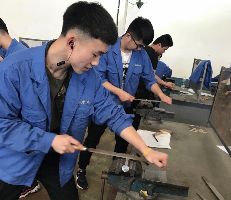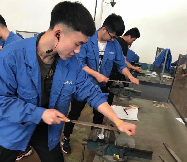 实训工厂里李威认真打磨工具