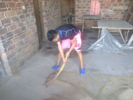 朱冬老师带领学生们宣传三农知识、并帮助干农活