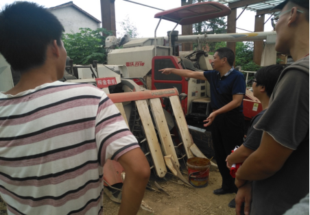 下农田与负责人、操作师傅等相互学习、共同探讨,对如何快速、有效解决拖拉机、联合收割机、插秧机等主要机型常见故障进行了深入交流和指导操作