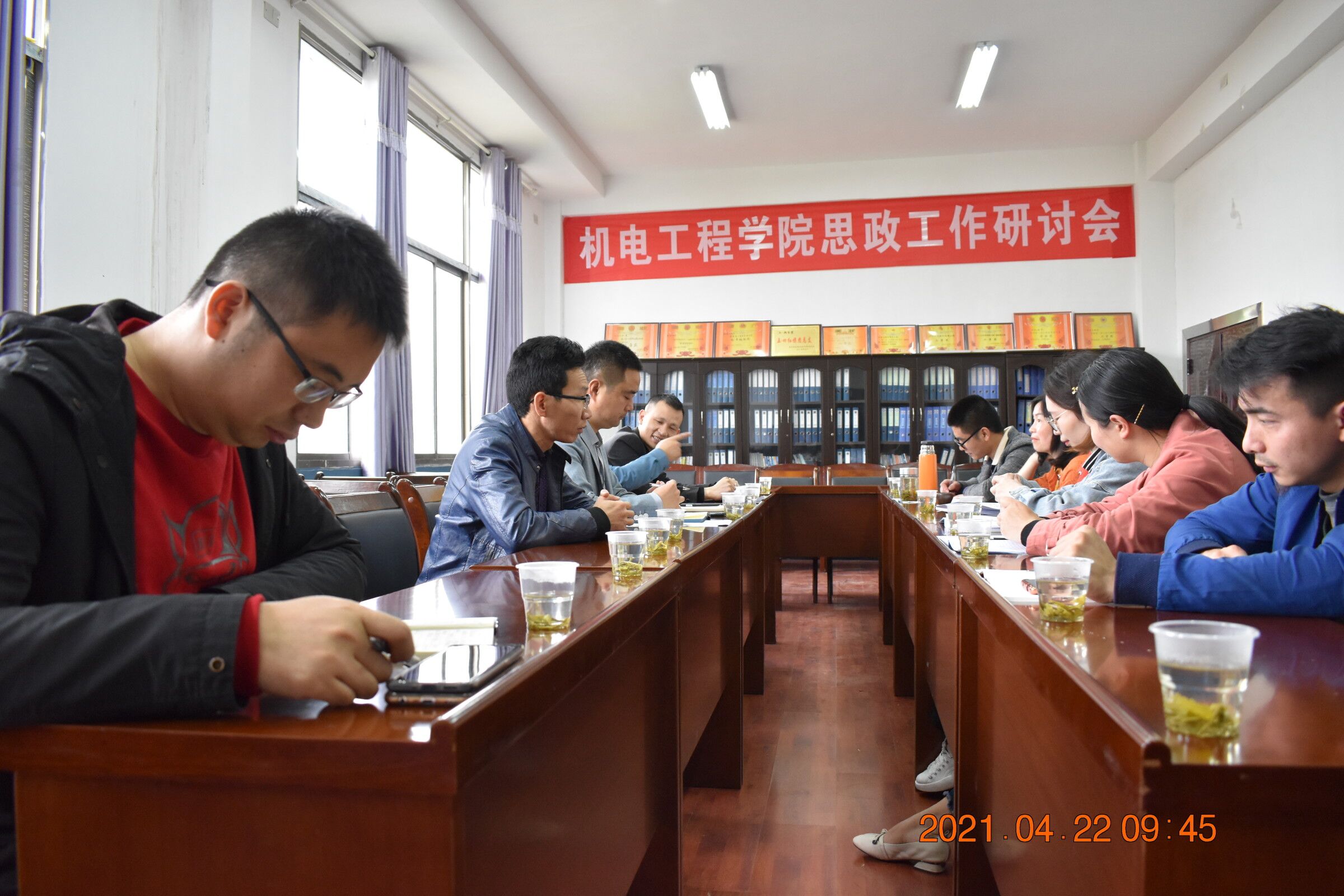 4月22日,构建“三全育人”体系,融入“楚怡精神”,助推机电工程学院思政工作新征程研讨会,在机电工程学院212室顺利召开。邀请学工处处长李规,机电学院党支部书记梁艳丰,副院长柴斌,各教研室主任,戴湘、向聪老师以及辅导员唐明月、吴妙琼、吴凭、邹艳、彭鑫、彭可参加此次研讨会议。
