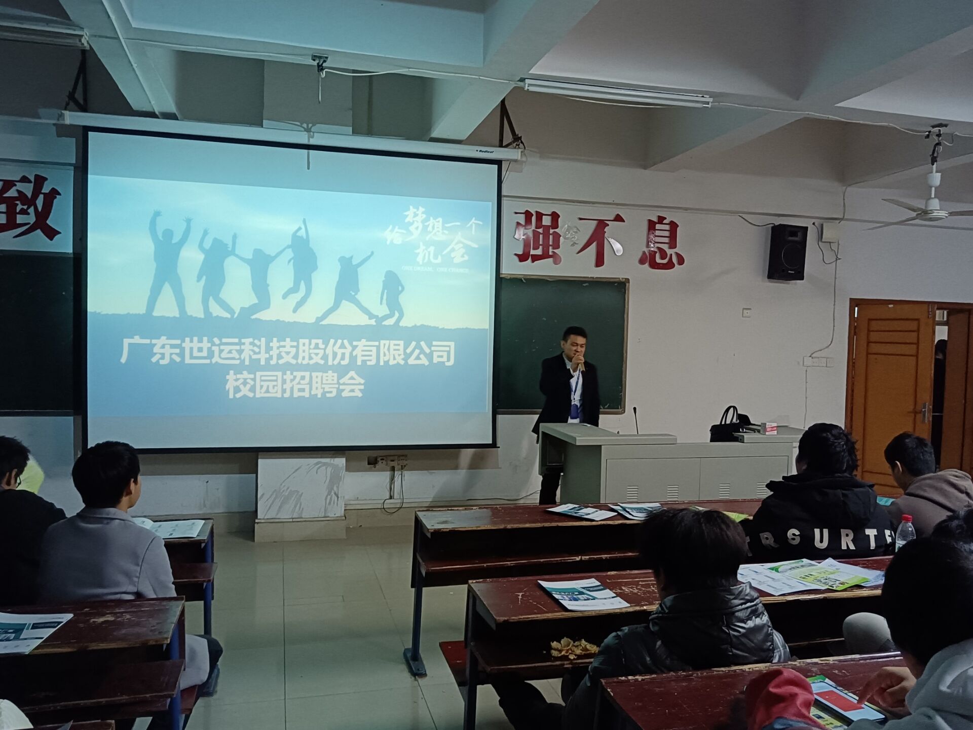 2021年12月8日晚上19:30在主教学楼410教室开展机电工程学院企业宣讲会。本次宣讲会有广州艾柔生物科技有限公司、广东世运科技股份有限公司、蓝思精密(泰州)有限公司、广州国光电子有限公司四家企业到我院机电工程学院宣讲,各企业负责人对所属公司宣讲了简介,讲述了企业的发展前景,住宿条件、车间环境、就业前景、交通便利、薪资待遇、企业发展空间等。