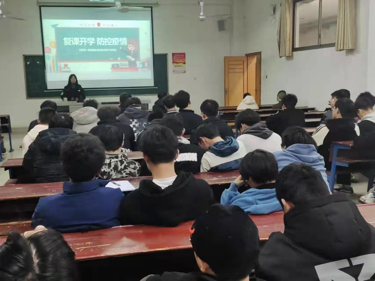2022年2月27日机电工程学院在主教楼召开了防控疫情的主题班会。本次班会,进一步加强了学校各防控部门之间的协调、配合,提高了各班级对疫情突发事件的处置能力。机电工程学院将继续健全疫情防控的应急处理机制,把防控工作做实、做细、做到位,构筑校园安全防线永不松懈。