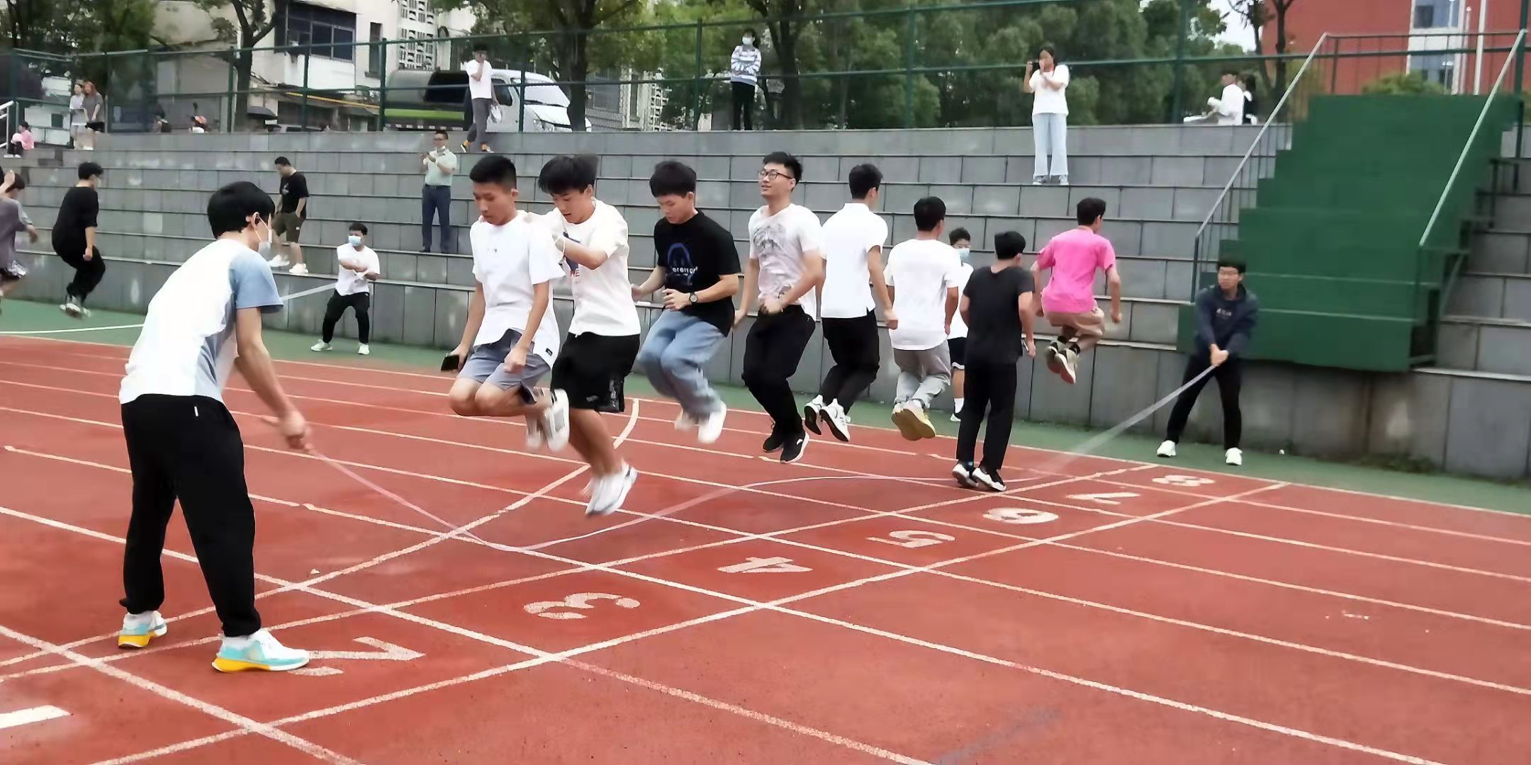 (同学们在进行集体跳绳)