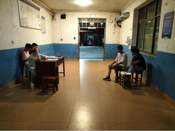 (宿管部成员正在楼下集合)