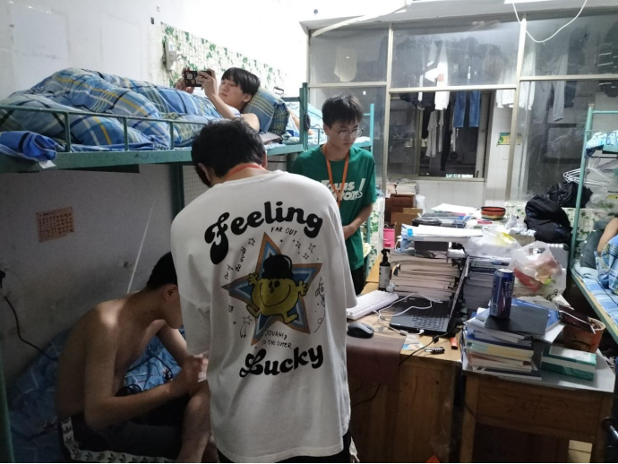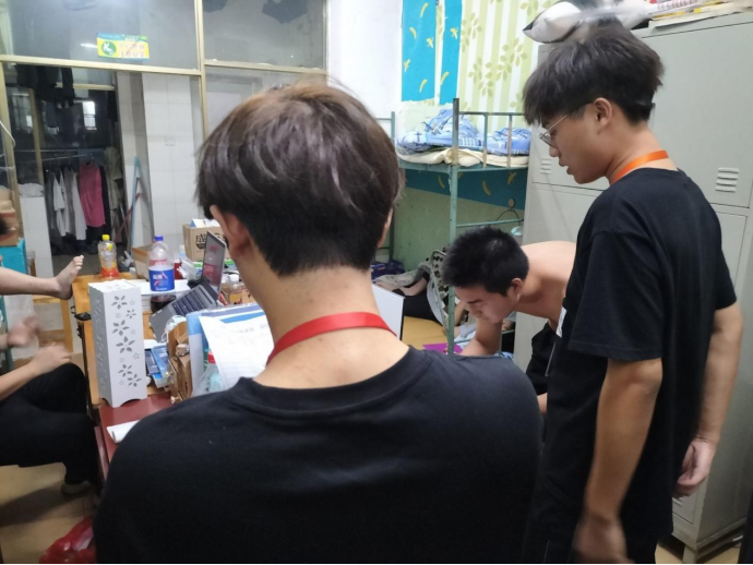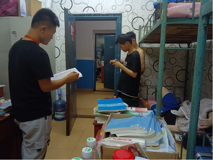 (宿管部成员正在进行安全隐患排查工作)