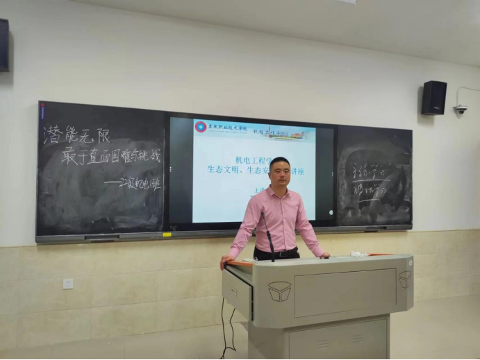 为了贯彻绿水青山就是金山银山,保护环境就是保护生产力,改善环境就是发展生产力的理念,机电工程学院于2022年10月16日晚上7:30在主教楼605教师开展了“生态安全·生态文明”安全专题讲座,此次讲座由机电工程学院副院长柴斌主讲。