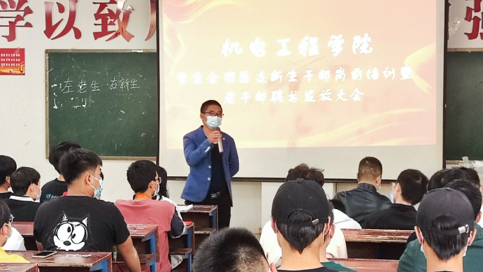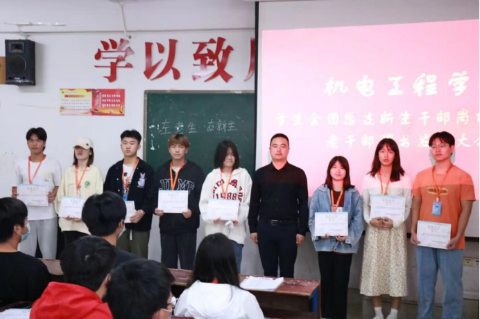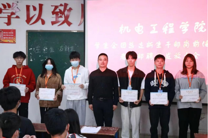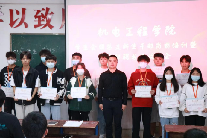 为加强新一届团总支,学生会各部门的工作能力充分发挥学生的才能,于2022年11月6日下午在主教楼210教室召开了机电工程学院学生会团总支新生干部岗前培训暨老干部聘书发放大会。