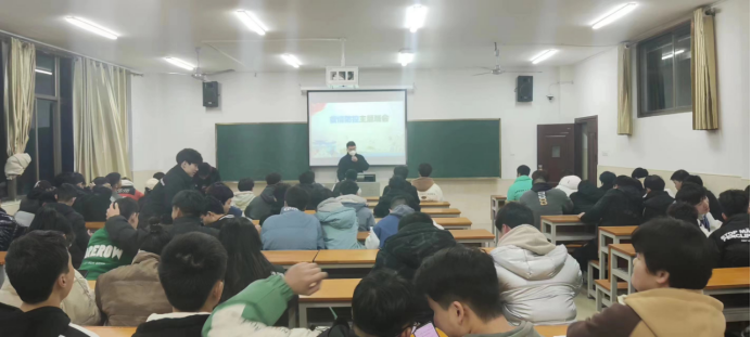 (彭鑫老师在给同学开展班会)