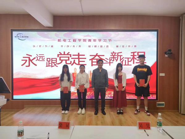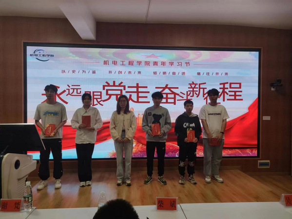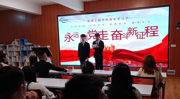 2023年5月12日19点,机电工程学院在创客中心举行“永远跟党走,奋斗新征程”演讲比赛,本次比赛的评委老师为机电工程学院柴斌副院长、吴凭老师、彭鑫老师和艺术设计学院谢梵老师,由21级机制2班周权和22级机电1班周哲吉主持。比赛过程中,每位选手激情演讲,认真地分享自己对书本的感悟。