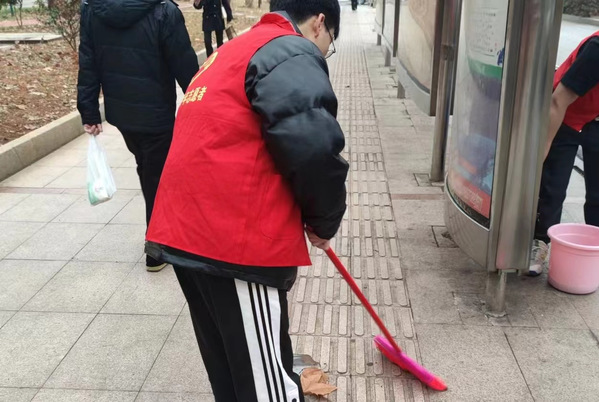 (吴凭老师带领志愿者们参与学雷锋精神)