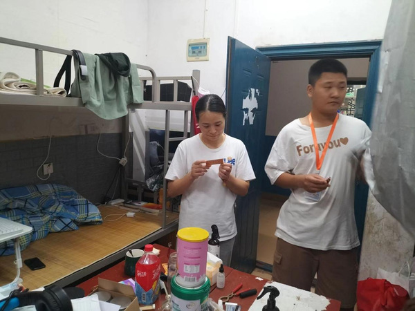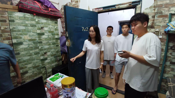(吴凭老师在检查学生寝室)