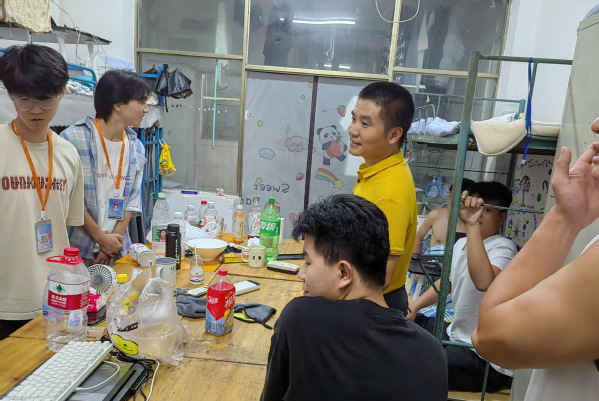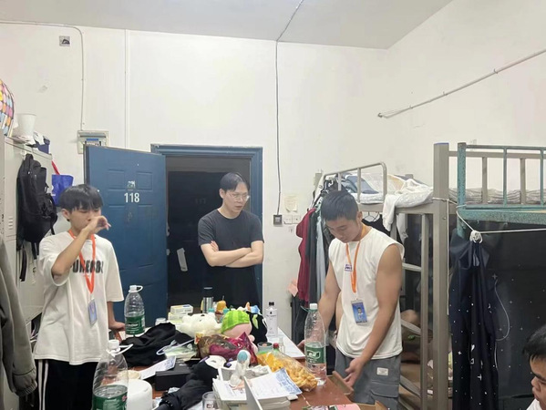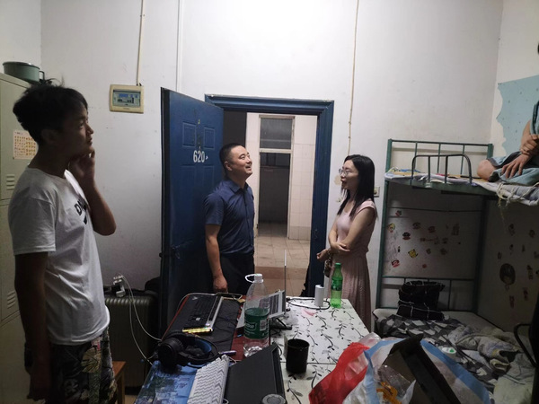 (孙锦涛老师在检查学生寝室)