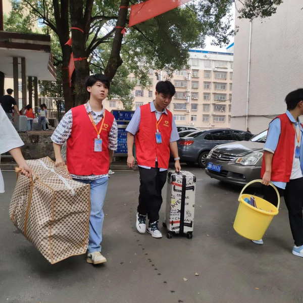 (志愿者帮新生搬行李)