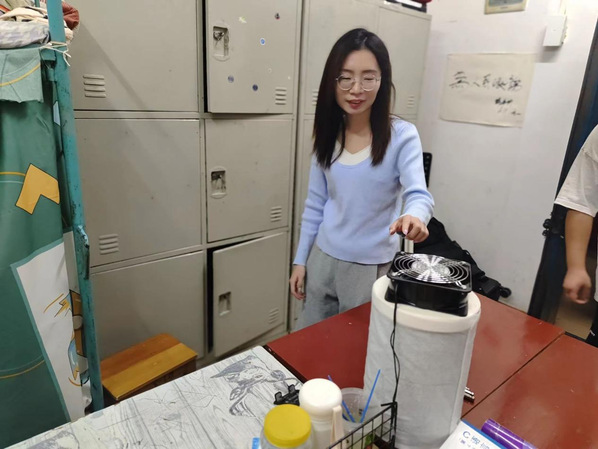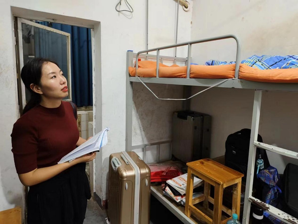 (袁媛老师正在检查宿舍卫生和大功率电器)