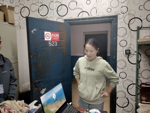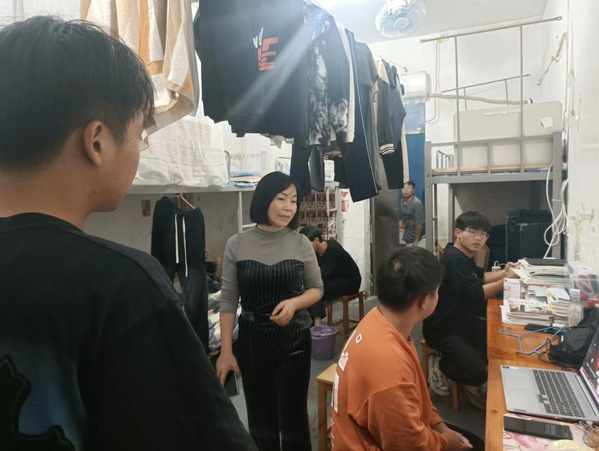 (吴凭老师正在进行用电安全和宿舍卫生检查)