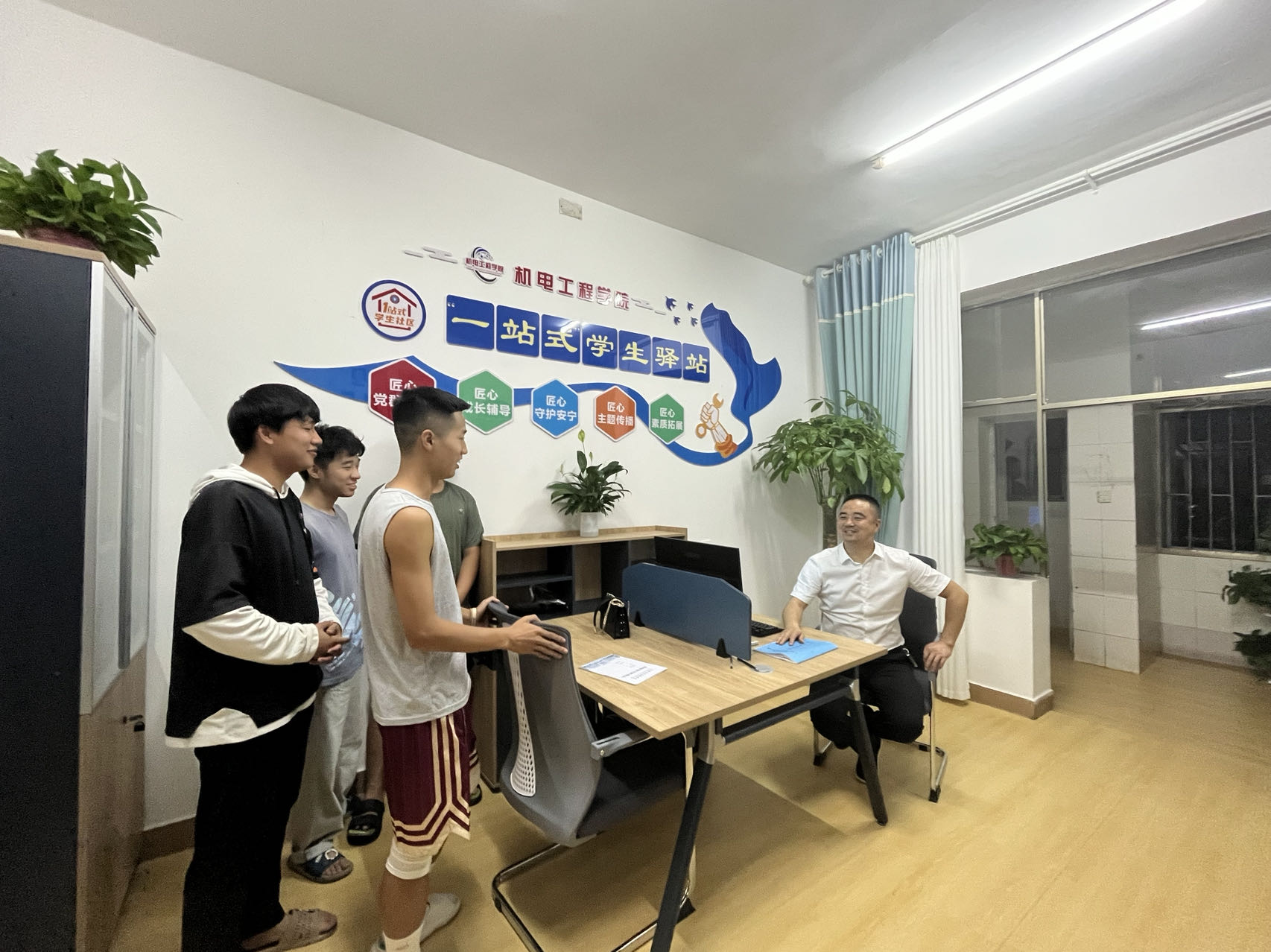 机电工程学院“一站式”学生驿站暖心进公寓,针对学生实际需求,将思政力量下沉社区,为学生营造良好的服务环境,提升“德技并修、匠心育人”的育人实效。