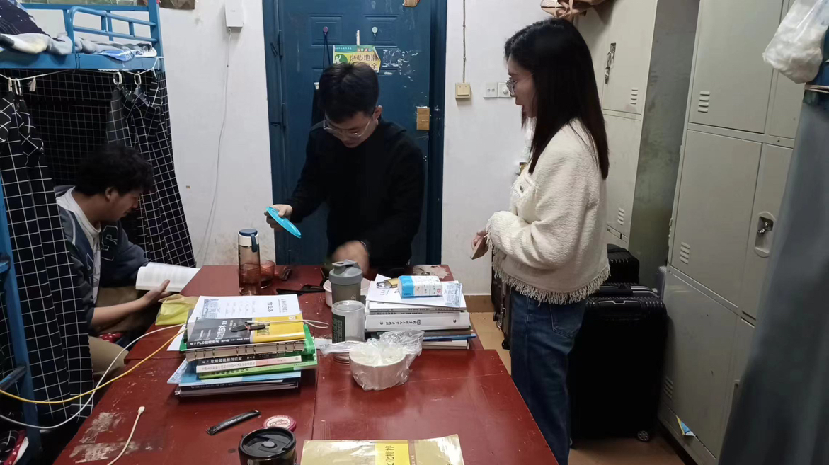 (吴凭老师正在宿舍进行安全排查)
