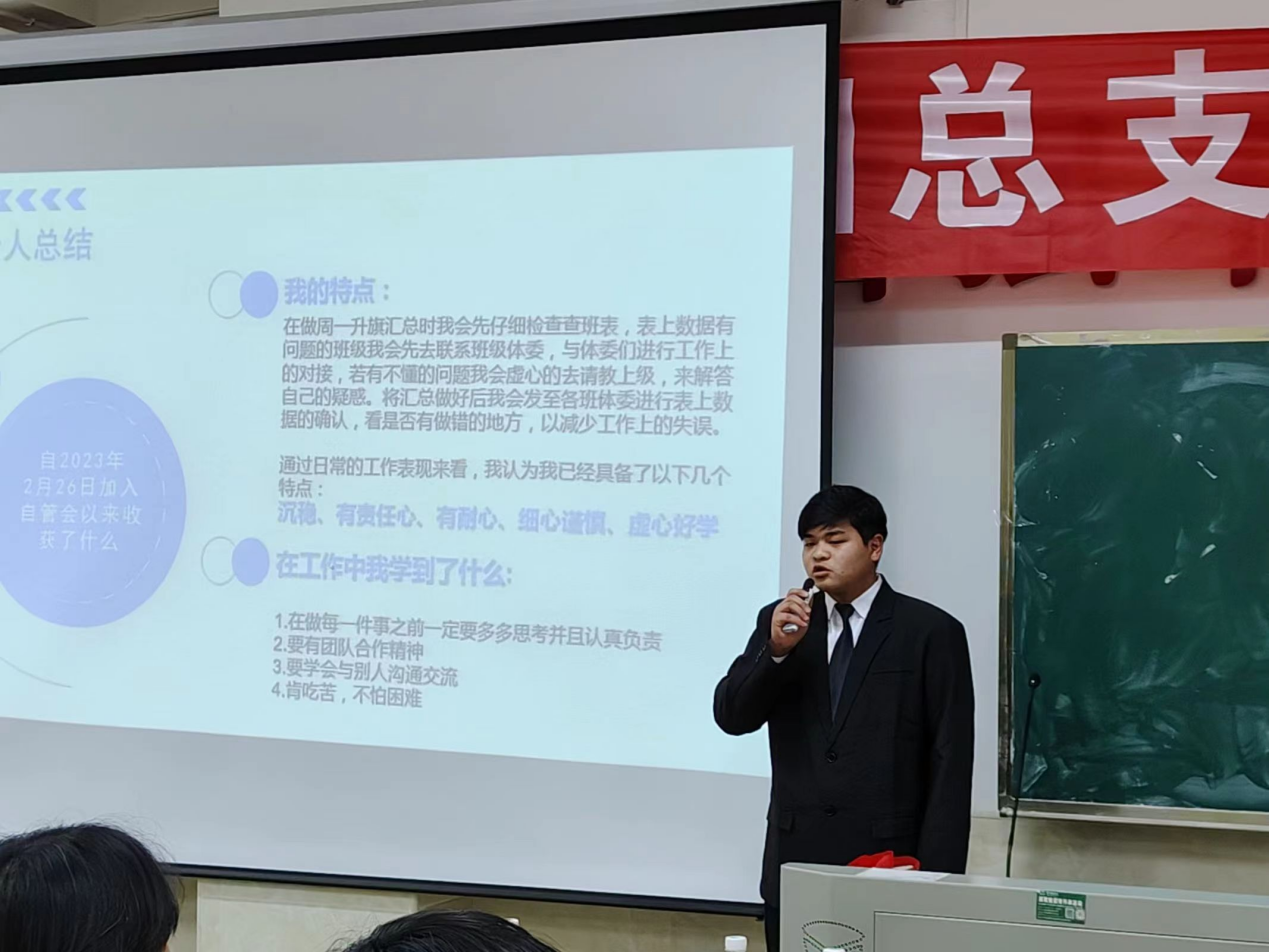 本次自管会团总支换届大会的成功举办,为机电工程学院选拔出了品学兼优的新一届学生干部,顺利完成了学生干部的新老交替,为我院进一步加强学生干部队伍建设、推进学生组织改革创新和健康发展、充分发挥学生组织的引领作用和自我教育、自我管理、自我服务职能奠定了坚实基础。期待自管会全体成员在今后的工作中能够积极上进、履行职责,更好的服务同学,勠力同心、砥砺前行,书写电气工程系团学工作新篇章!(杨琦)