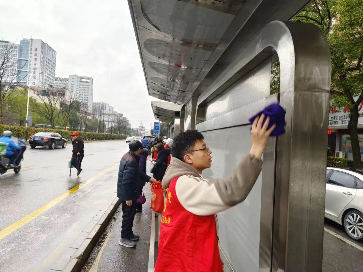 为进一步传承弘扬志愿服务精神,宣传志愿服务理念,倡导文明新风尚,培养青少年乐于奉献的志愿服务精神和爱护环境的意识。3月5日,机电工程学院组织擦亮公交站台志愿者活动。