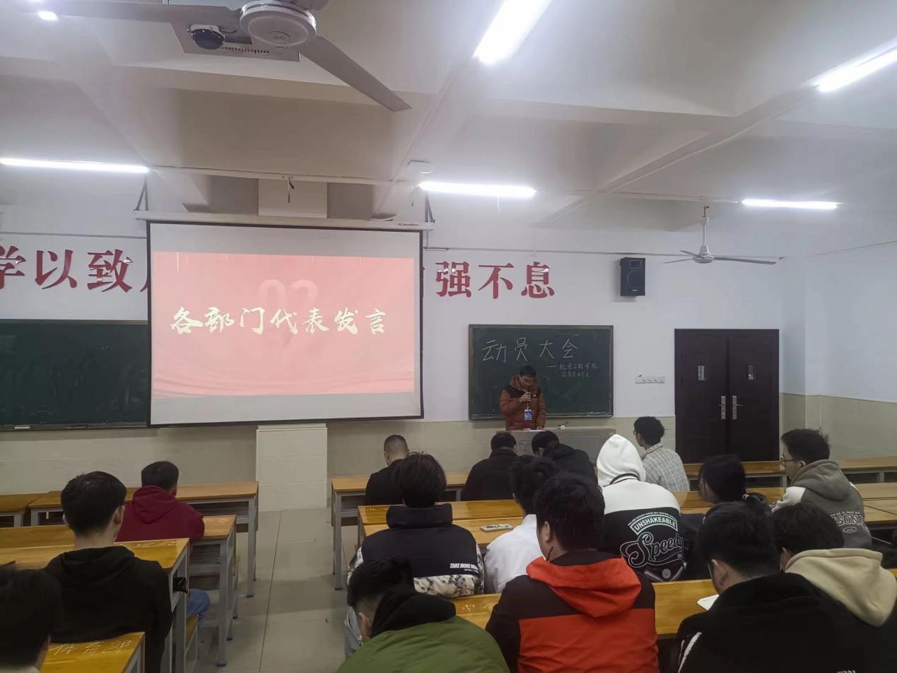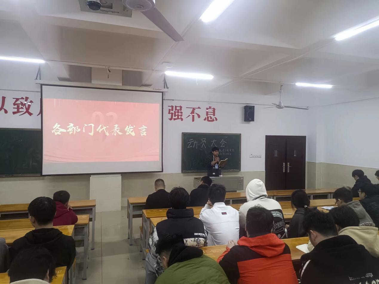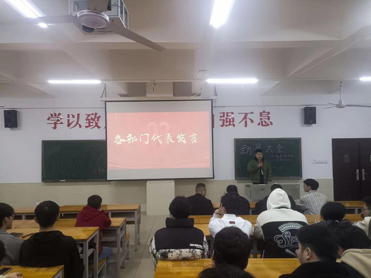 为确保新学期工作目标有序开展,进一步提高自管会成员的组织纪律性和凝聚力,加强学生干部队伍建设。机电工程学院自管会团总支于3月13日午在主教楼召开本学期动员大会”。此次会议由柴斌副院长、刘骐墉老师组织召开,全体自管会成员参会。