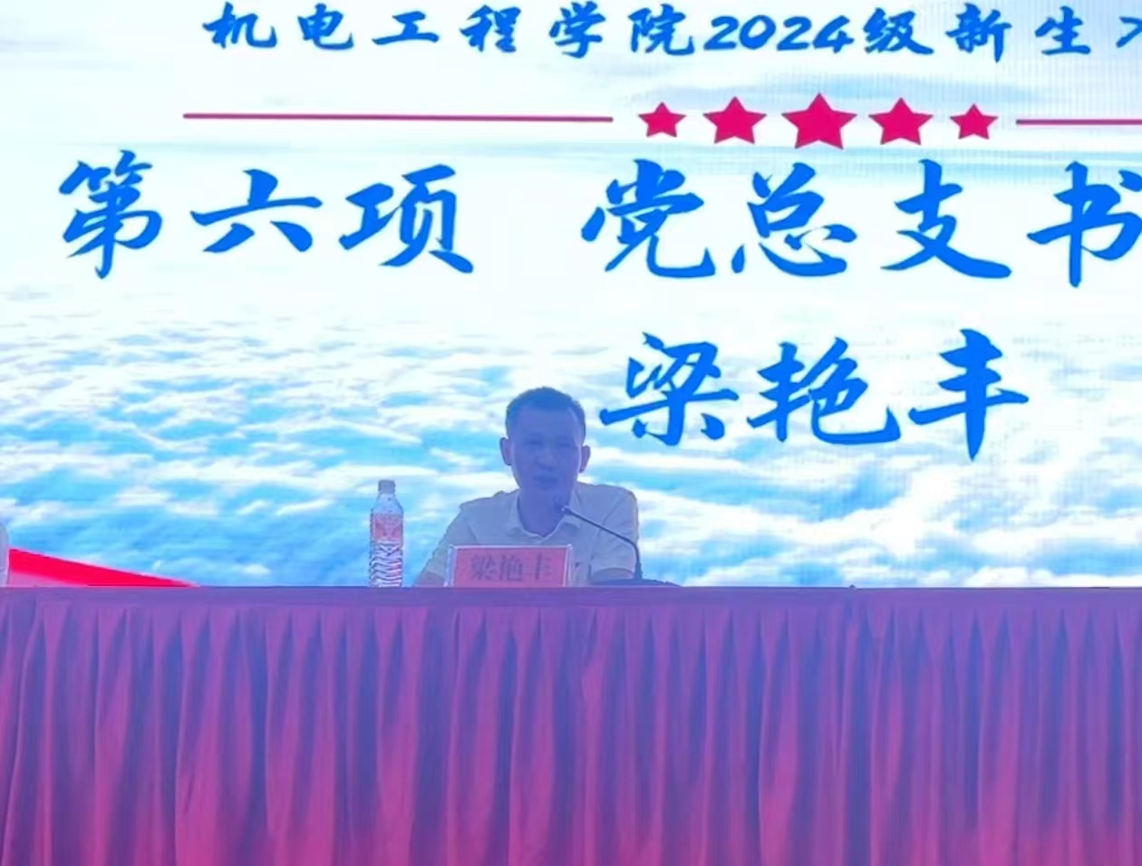 9月26日,娄底职业技术学院机电工程学院2024级新生入学教育在学术报告厅举行。学院党总支书记梁艳丰、教学副院长龙育才、学工副院长柴斌、实训副院长王税睿出席,各教研室主任、教师代表、教学干事、全体专职辅导员、24级全体新生参加大会。大会由龙育才主持。