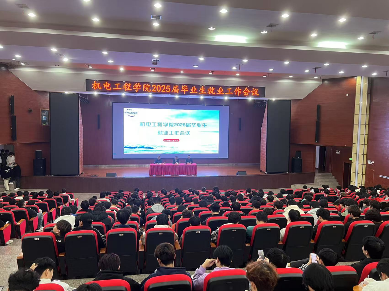 机电工程学院于11月19日晚,在学术报告大厅举行2025届毕业生毕业就业工作会议,参与人员有学院党总支书记梁艳丰、副院长龙育才、副院长柴斌、毕业班级辅导员以及全体2025届全体毕业生。