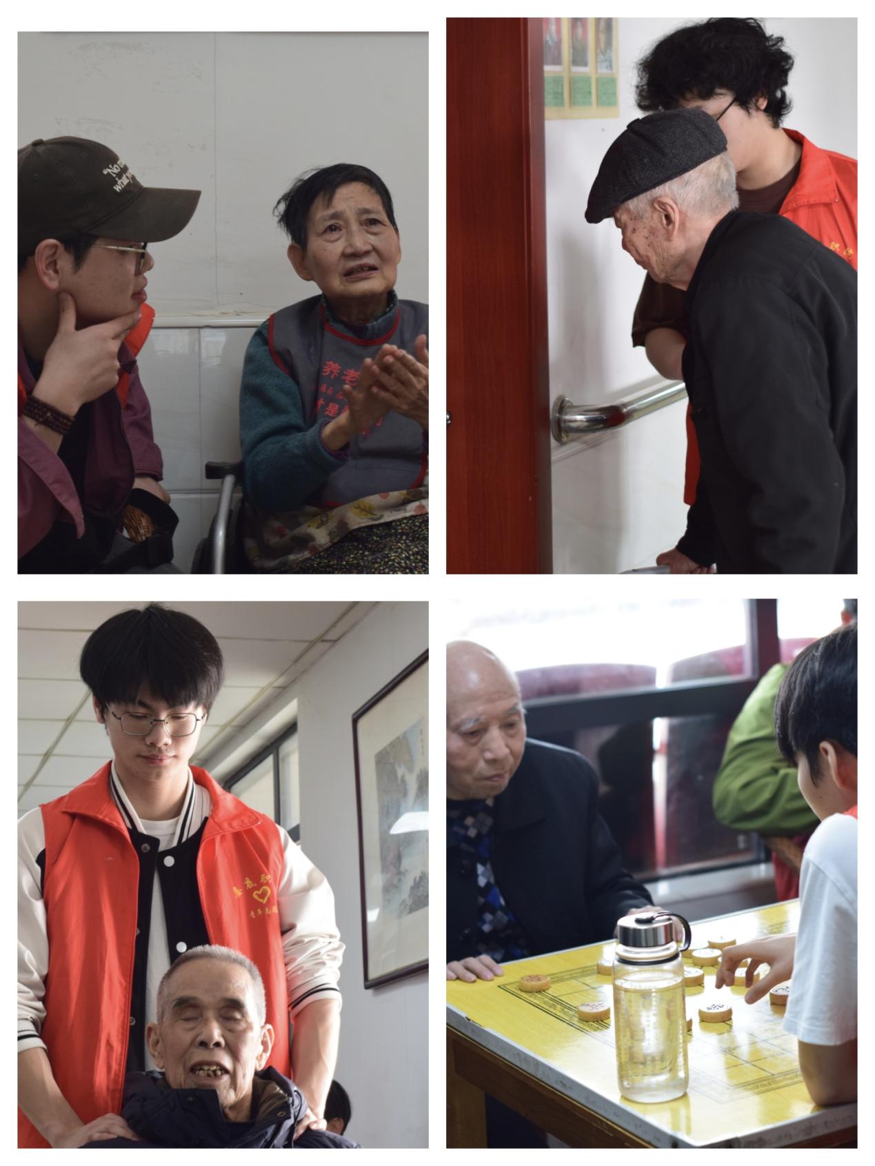 在表演结束后,志愿者们组织老人们玩起了互动游戏,陪伴老人聊天,下象棋,按摩,为老人修剪指甲,让老人们在欢笑中感受陪伴的快乐。