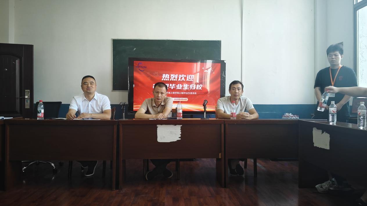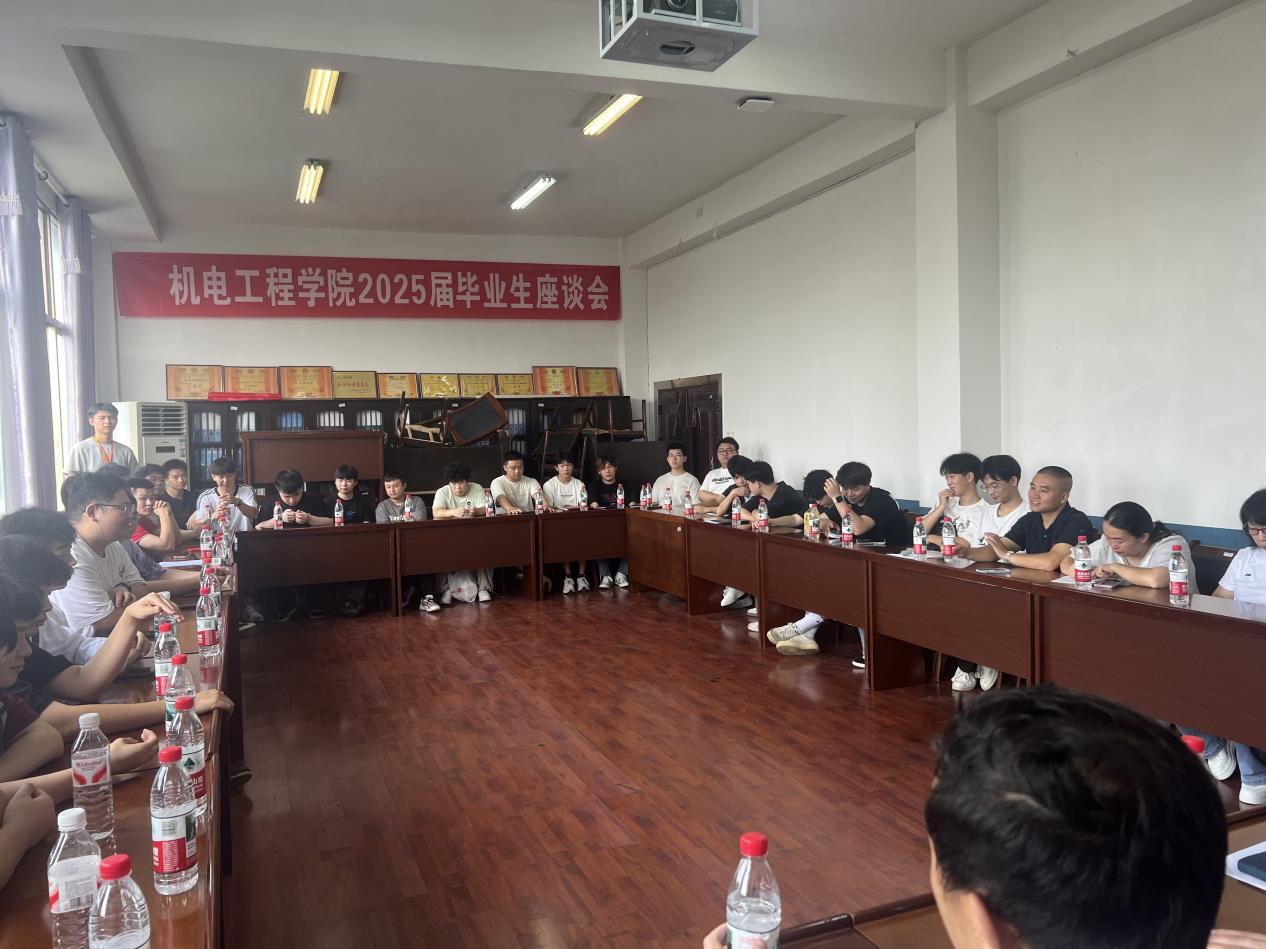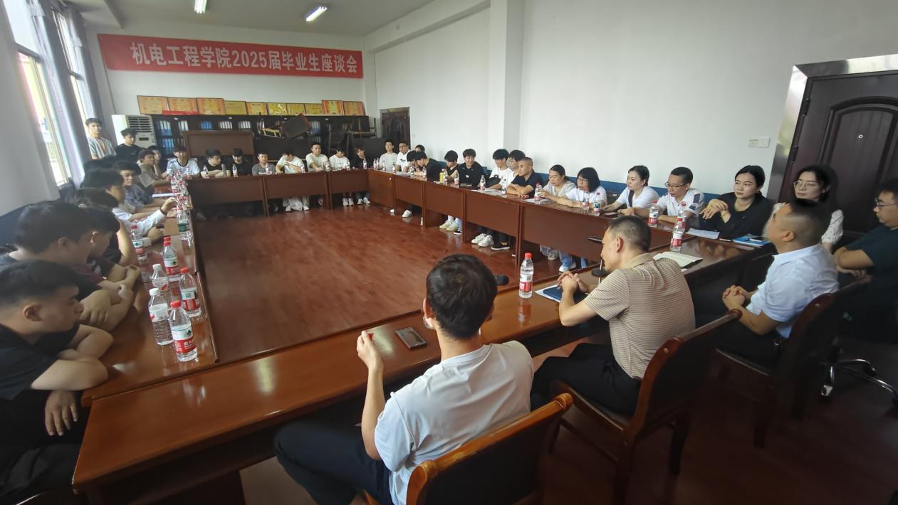 2025年6月26日机电工程学院在实习工厂会议室召开22级毕业生座谈会,出席本次大会的领导有梁艳丰书记、柴斌副院长、王税睿副院长、及各辅导员老师、任课老师。