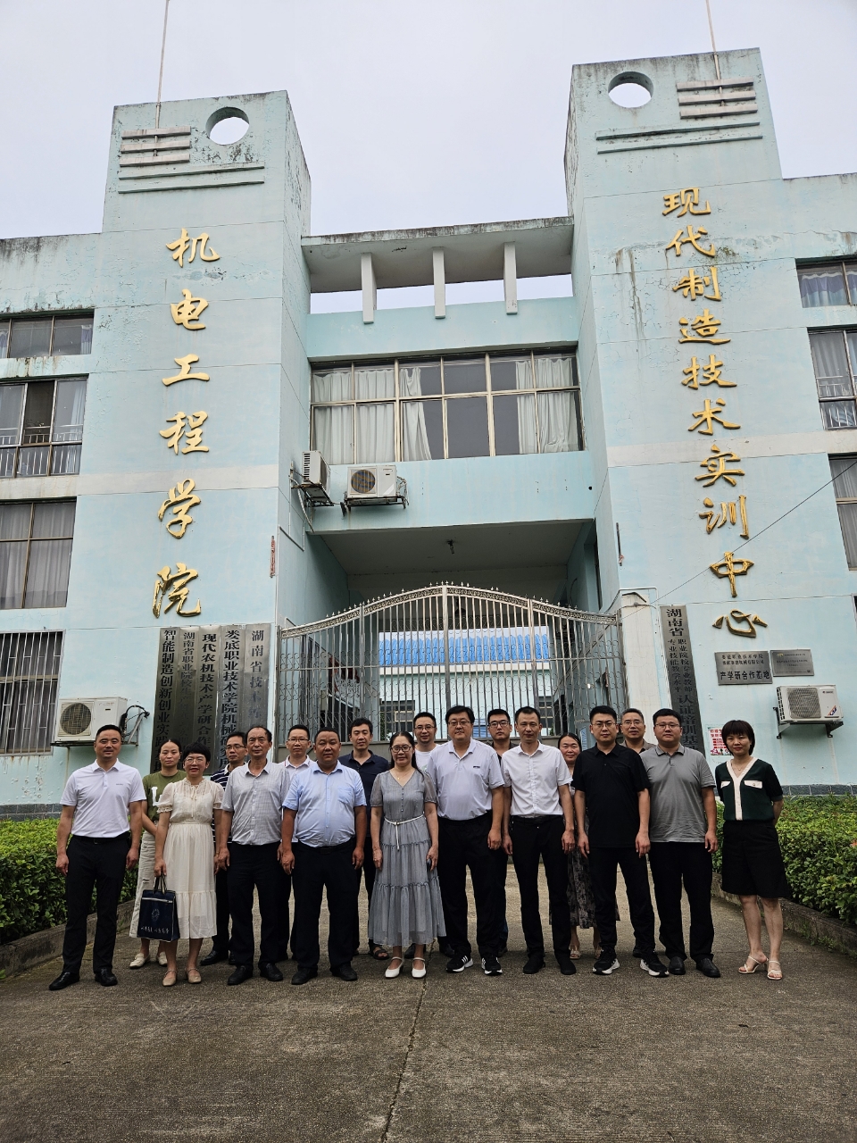 2024年6月21日,湖南人文科技学院教务处李宁副处长、能源与机电工程学院胡东院长、王舒副院长、岳周主任、聂时君老师一行莅临我校,我校高度重视此次交流活动,副校长游新娥,学校教务处处长朱燕、副处长熊权湘、李权,机电工程学院院长陈育新、党总支书记梁艳丰、副院长肖志江、王税睿、龙育才、柴斌等领导,以及吴光辉、张翠娟等专任教师,一起参观、座谈交流,就本科试点专业合作的方方面面展开了深入的探讨。交流会由梁艳丰书记主持,陈育新院长致欢迎词,龙育才副院长汇报了项目推进情况,湖南人文胡东院长介绍此项目的本科院校相关情况并对本科层次技术技能人才培养提出了建议。