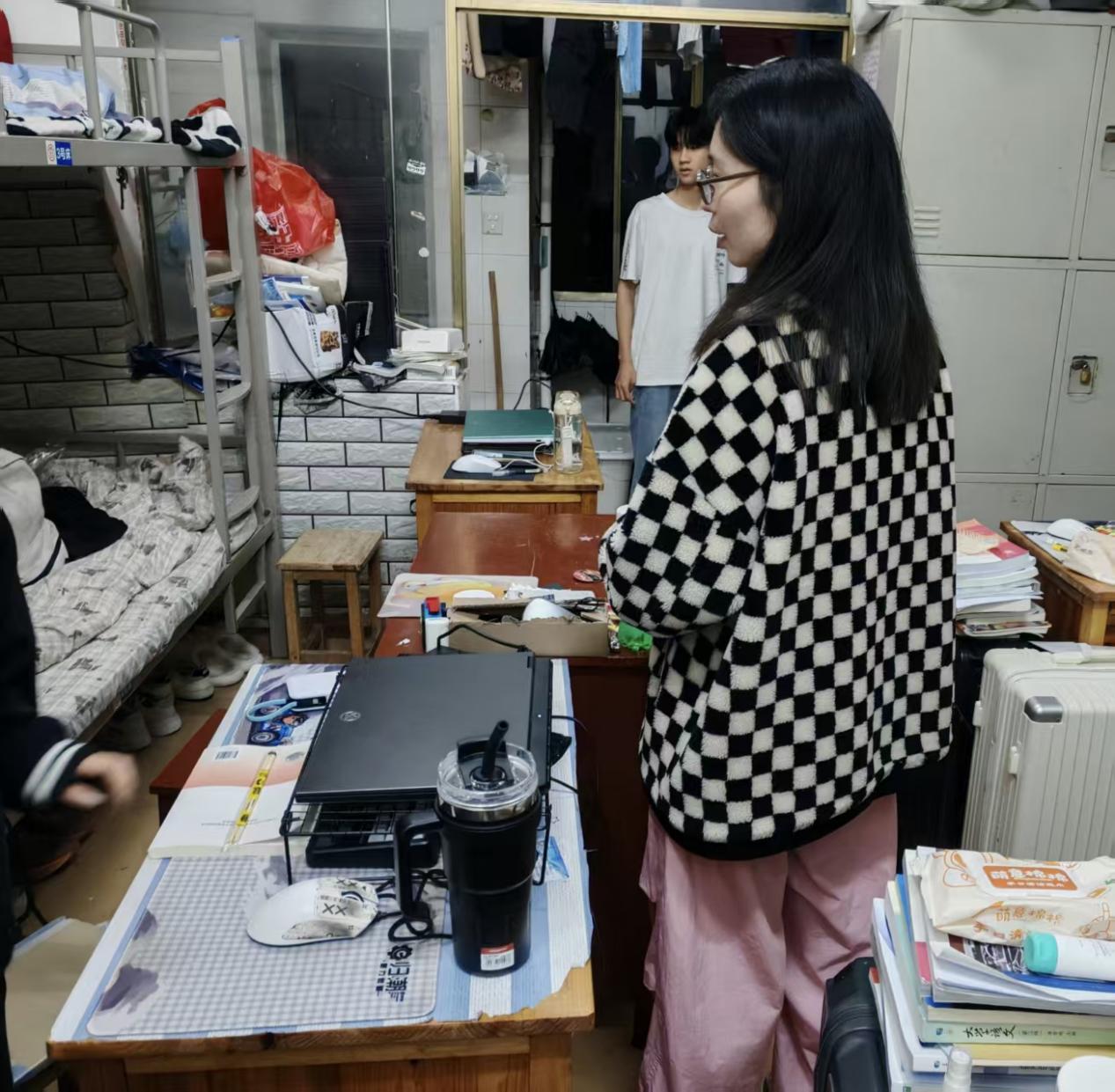 排查过程中,辅导员老师们还与学生进行亲切交流,细致询问学生的学习进展、日常生活情况及心理状态,耐心倾听学生在住宿期间的诉求与困难,叮嘱学生合理作息、注重身心健康,遇到问题第一时间向学院和老师反馈。全体学生积极配合排查工作,主动落实隐患整改,现场氛围融洽有序。