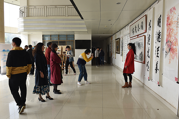 展览期间,省委“不忘初心,牢记使命”主题教育第十巡回指导组领导、我校校领导以及全校师生到场观展,到场领导与书画作品作者亲切交谈、合影,品评佳处,师生们纷纷举起手机,摄下精彩作品并转发。许多观展者表示,看展之后,既感受到了当前主题教育、廉政文化的熏陶,又领略到了书画摄影艺术之美,为我校校园文化建设添上了厚重的一笔。