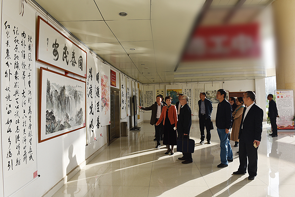 我校离退休老同志们观看自己的作品