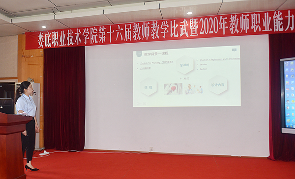 现场展示环节分为教学展示和答辩两个部分,教学展示部分由参赛团队现场抽取2份不同教案,在主教学楼备课30分钟,随后再由团队成员逐一结合多媒体进行教学实施报告和模拟教学的讲授。答辩环节试题由评委根据参赛作品材料和现场展示内容拟定,团队现场回答。各参赛团队教学内容准备充分,多媒体讲授运用自如,言语表达清晰流畅,台风落落大方,为大家展示了我校教育教学的先进理念、实践经验、特色创新和教师个人风采,获得了现场观众的称赞。