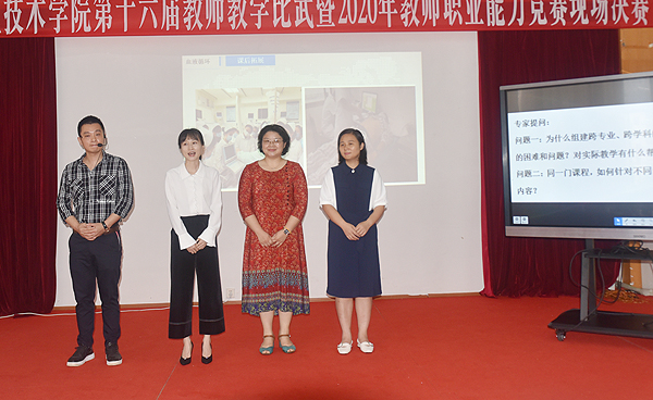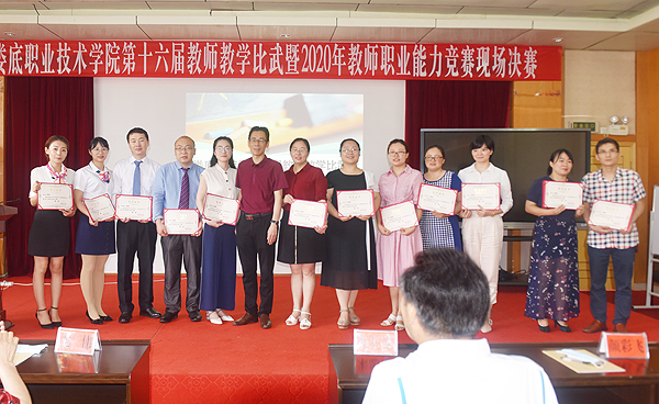 为进一步提高教师职业能力,备战即将到来的省级及国家职业院校教师职业能力竞赛,6月10日,我校在主教学楼多功能报告厅举行第十六届教师教学比武暨2020年教师职业能力竞赛决赛。在预赛和网络评审中脱颖而出的12个团队39位教师同场竞技,为现场观众奉献了一场精彩的教学盛宴。校领导朱忠义、颜彩飞、龙伟、邹松建、周志和出席,教务处等相关职能部门负责人、各二级学院(教学部)教师代表观摩比赛。