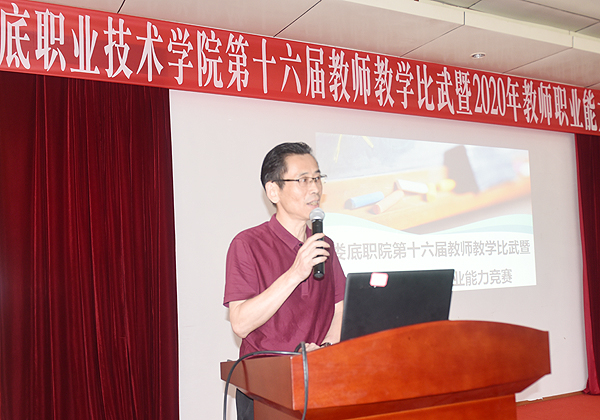 在热烈的掌声中,校长朱忠义宣布我校第十六届教师教学比武暨2020年教师职业能力竞赛现场决赛正式开赛。