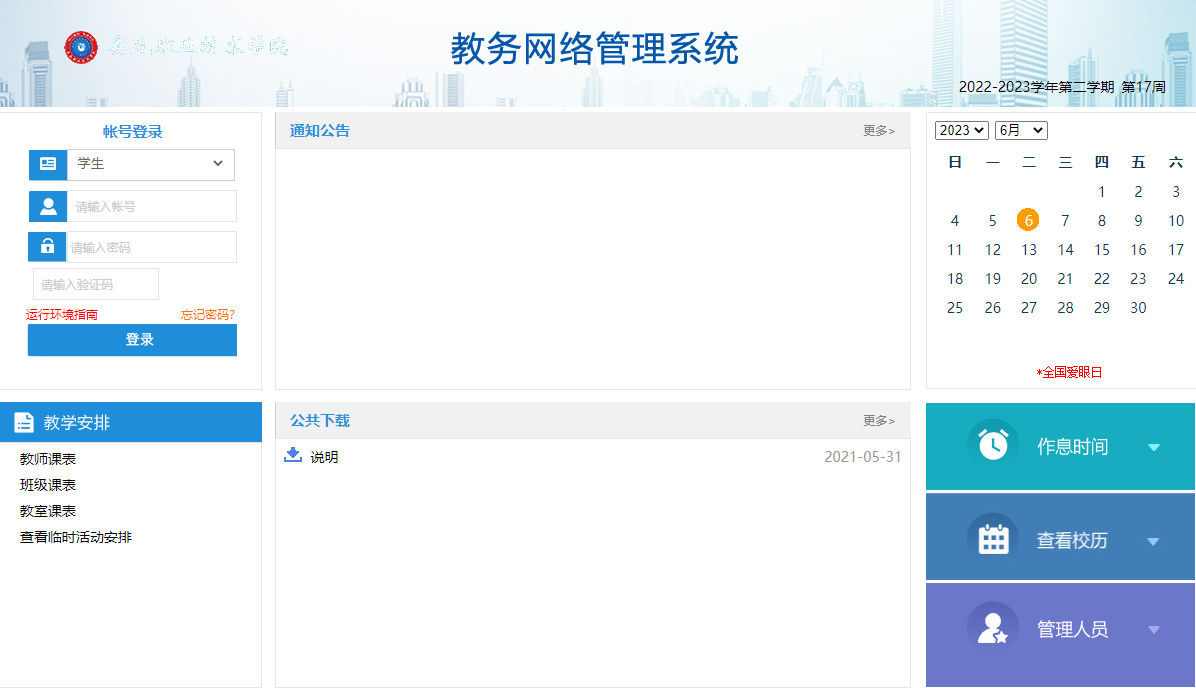 2、单击网页下方的“教务管理系统”图标